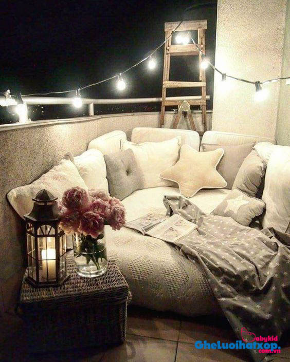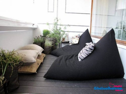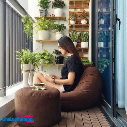 Bị hạn chế bởi góc ban công vừa phải thậm chí là nhỏ, không có chỗ cho những chiếc ghế nằm, đi văng, bạn hoàn toàn có thể nghĩ đến chiếc ghế lười bởi sự êm ái, thư giãn mà rất tiết kiệm không gian. Biến nó thành nơi nhâm nhi tách trà chiều, trò chuyện; thành góc tưởng thưởng đón bình minh với ly cà phê sữa. Góc ban công thường là không gian ngoài trời trong khi ghế lười có thể dễ dàng di chuyển, linh động vị trí chứ không nhất thiết đặt cố định như đi văng, bàn ghế gỗ.