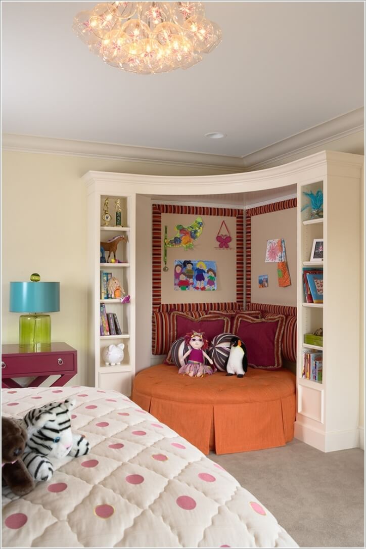 Một công thức dễ dàng và nhanh chóng tạo không gian dễ thương dành cho bé là thêm một chiếc ghế lười; bố trí rèm trông giống phòng của công chúa dành cho các bé gái.