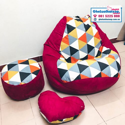 – Dạ có anh nhé, ghế hạt xốp bên em đủ 3 size S, M, L cho anh chọn. Đây là mẫu nhà em tự thiết kế tự may luôn ạ.