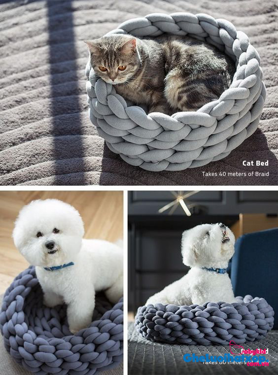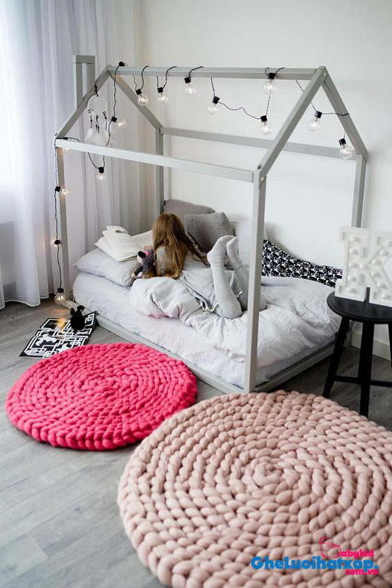Ngoài ra bạn hoàn toàn có thể sáng tạo những tấm nệm nhỏ, túi ngủ nhỏ hoặc thậm chí là nôi cho bé. Đừng cất gọn gàng những cuộn len vào một ngăn kéo nào đó; đã đến lúc bạn dùng chúng để trang trí nhà cửa; ( những bông hoa bằng len, những ngọn đèn hình ngôi sao, quả trứng…). Và những vật dụng cần thiết như lót ổ cho chó, mèo, động vật trong nhà, thảm trải sàn, thảm lau chân…