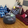 1. Decor cho phòng khách cùng ghế lười hạt xốp