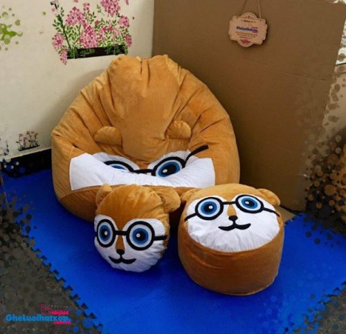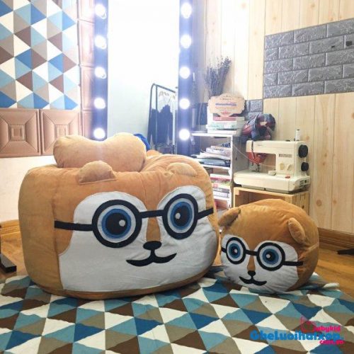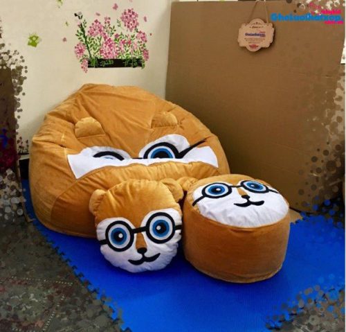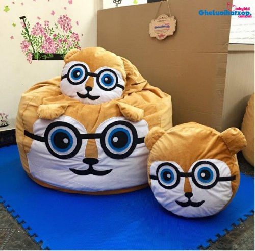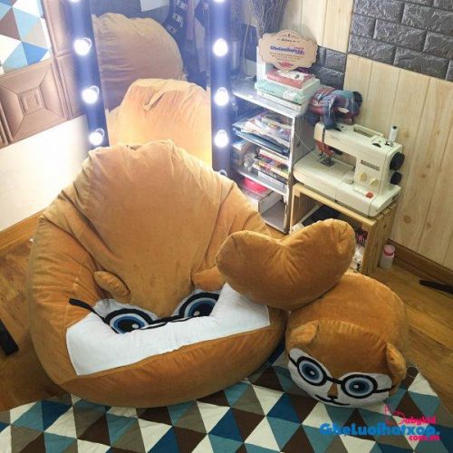 Bộ ghế lười dáng lê Sóc vàng bao gồm: Ghế lười hình thú Sóc vàng cỡ đại được làm theo dáng ghế lười hạt xốp dáng lê, đôn tròn mặt Sóc dùng để gác chân và gối tròn hình mặt Sóc cùng bộ. Bộ ghế lười hình thú này có vẻ ngoài đáng yêu nên được cả người lớn và trẻ nhỏ yêu thích.