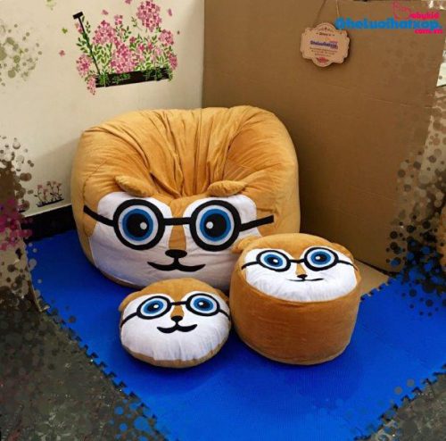 Ruột bên trong ghế lười hình thú là 1 túi vải dù, đựng hạt xốp ở bên trong. Túi vải dùng mỏng nhẹ, hạt xốp không thấm nước. Hạt xốp bên trong ghế lười cỡ đại khoảng 2,4 – 2,8kg.