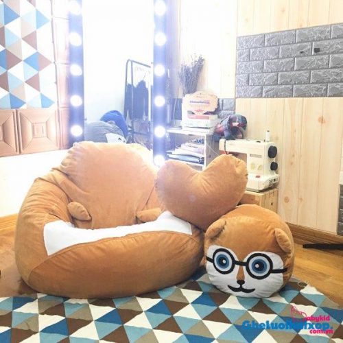 Bộ ghế lười dáng lê Sóc vàng đều có cấu tạo 2 lớp, tháo giặt dễ dàng. Vỏ bọc ghế lười hình thú làm từ vỏ bọc nhung Hàn Quốc cao cấp.