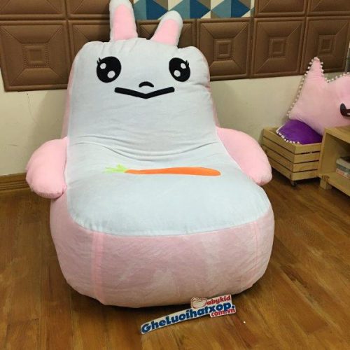 Ghế lười hạt xốp Babykid sofa thỏ hồng chất nhung GL SF035