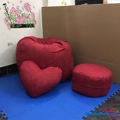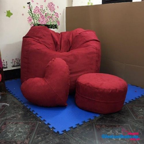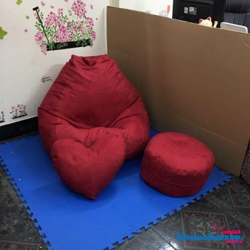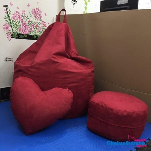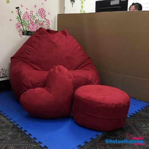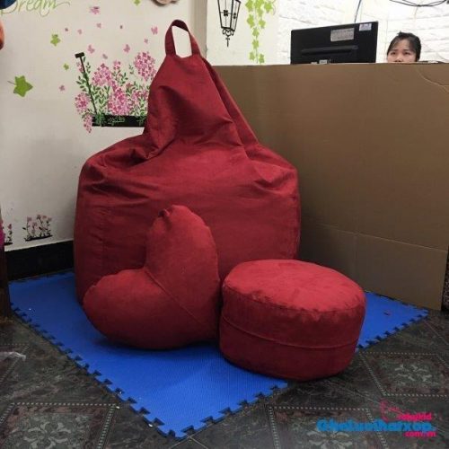 • Tên sản phẩm: Bộ ghế lười hạt xốp dáng lê da lộn đỏ đô