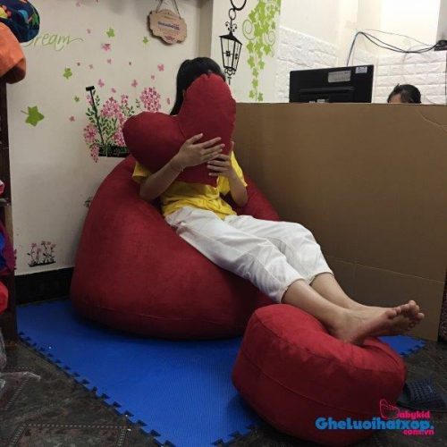 Bộ ghế lười hạt xốp dáng lê da lộn đỏ đô size L GL L225