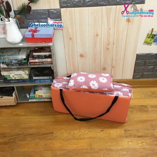 - Đệm gấp hoa cúc pha cam được sản xuất thủ công tại xưởng nội thất vải Babykid, 1 đệm gấp văn phòng thường được tặng kèm 1 gối đầu nhỏ cùng bộ.