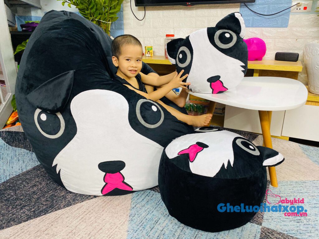 Ghế hạt xốp BBK mô phỏng chú cún đen cá tính, mạnh mẽ đặc biệt phù hợp với các bé trai. Ghế lười được may bằng chất liệu nhung lạnh Hàn Quốc cao cấp ấm vào mùa đông, mát vào mùa hè. Nằm rất êm ái, thoải mái, mềm mượt và thích hợp với da bé.