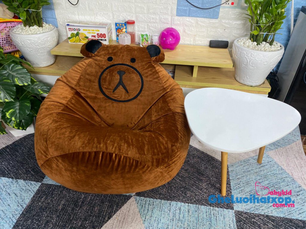 Ghế lười Babykid hoạ tiết gấu nâu tạo điểm nhấn và sinh động cho căn phòng. Màu nâu dễ phối kết hợp với bất kì màu sơn nào cũng như các nội thất trang trí khác nhau. Ghế lười chống bám bụi và ít bám bụi, lưu ý không để vật sắc nhọn va chạm hoặc ngồi ghế quá tải trọng, nhảy nhót trên ghế. Ghế sẽ rất bền và cảm giác luôn như mới.