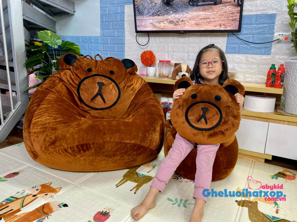 Đặc điểm Ghế lười Babykid vải nhung hoạ tiết gấu nâu viềm đen GL L2101 (size M)