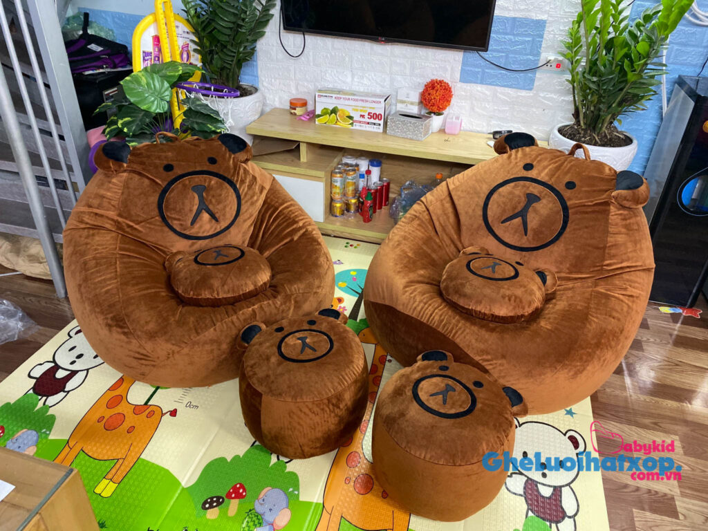 Bất kể đông hay hè, ghế lười Babykid vải nhung cao cấp luôn là chất liệu được các gia đình ưa chuộng. Các mẫu ghế nhugn với hoạ tiết đa dạng: gấu nâu, mèo kitty, hình cún đen, mèo xám mắt cười, totoro, heo xanh lá, doremon, mèo thần tài…