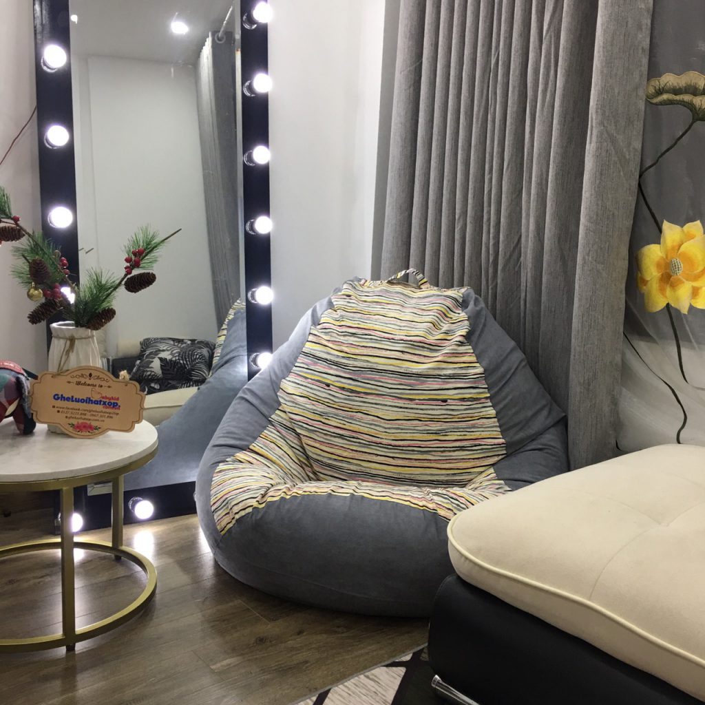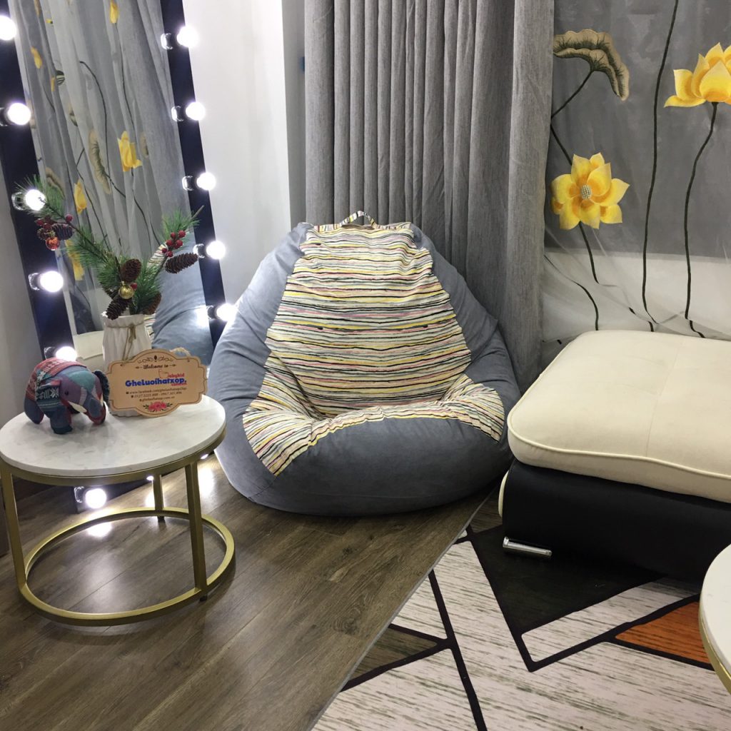 Hoạ tiết kẻ vằn được mệnh danh là bất tử trong làng thiết kế và thời trang. Nay được phối kết hợp trong mẫu ghế lười hạt xốp dáng lê tinh tế và sang trọng.