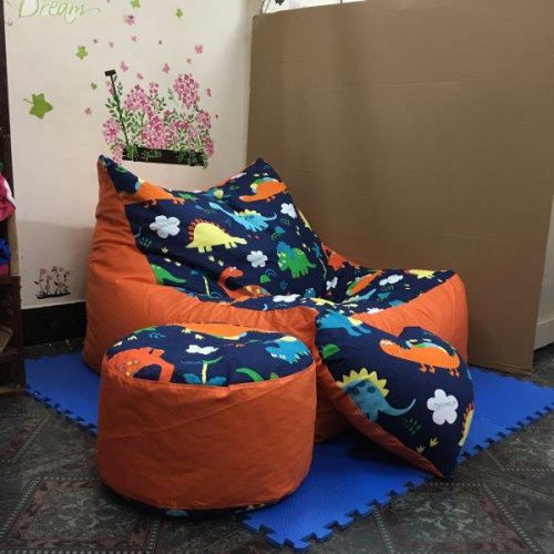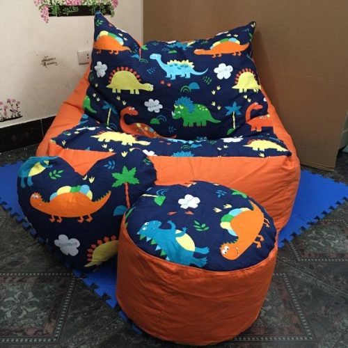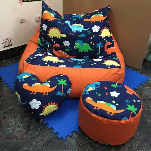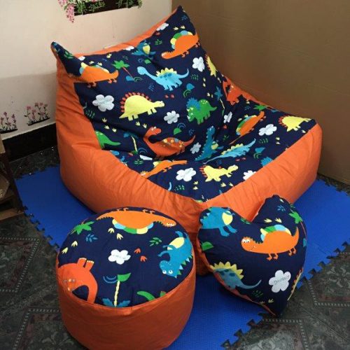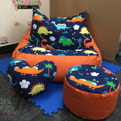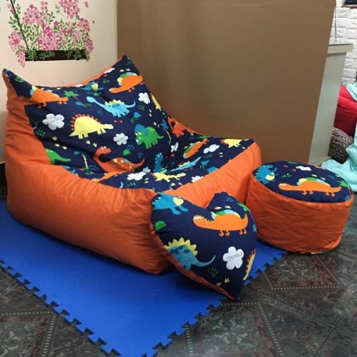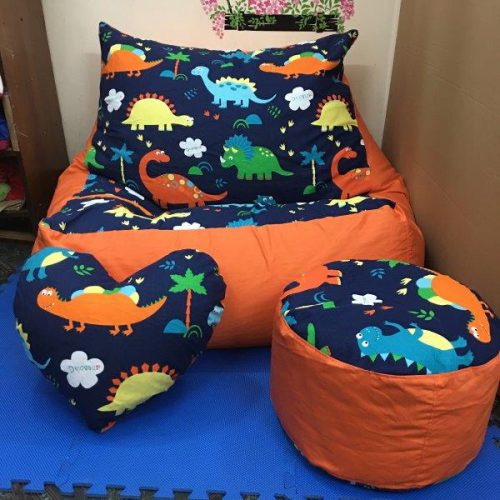 Mẫu ghế sofa mới lạ và độc đáo được chọn làm món đồ trang trí nội thất hiện đại đã dần được thu hút. Ghế hạt xốp dáng sofa họa tiết khủng long mix kaki cam được mọi người yêu thích bởi họa tiết ngộ nghĩnh, mix với tone sáng cực bắt mắt.