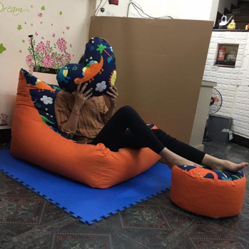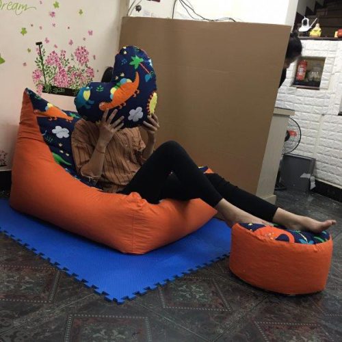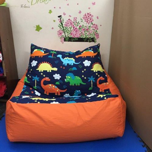 Thông tin sản phẩm: Ghế hạt xốp sofa họa tiết khủng long cam