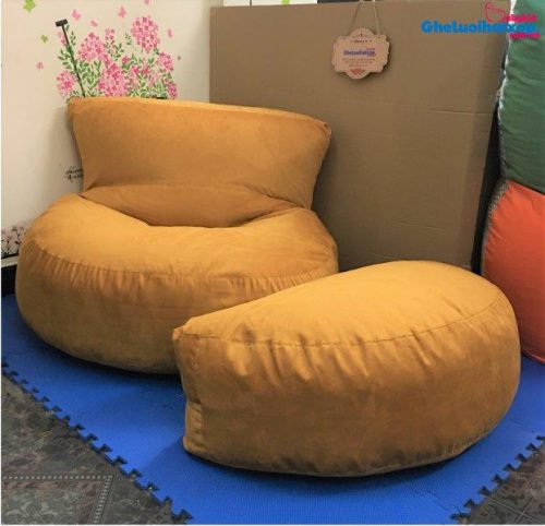 Ghế lười dáng sofa cũng giống như các loại ghế lười khác có cấu tạo 2 lớp: vỏ ghế là vải da lộn màu vàng, ruột là hạt xốp nhỏ.