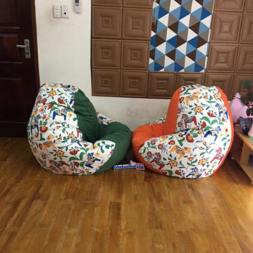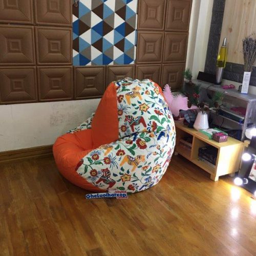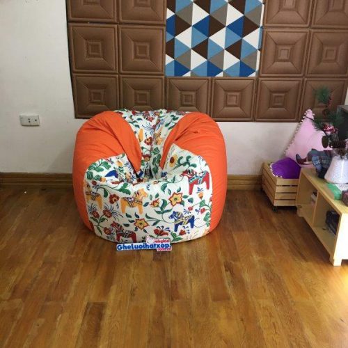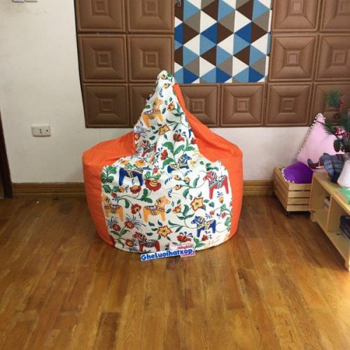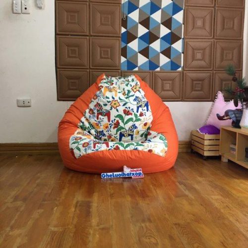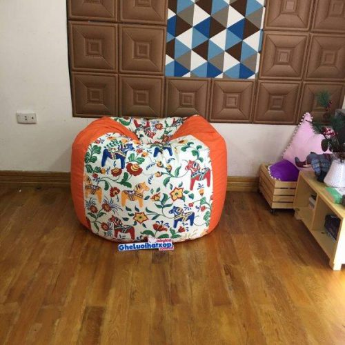 Ghế lười hạt xốp Babykid hình quả lê chất thô cotton họa tiết ngựa hoa mix chất kaki cam tạo nét cổ điển nhưng lại nhã nhặn, màu sắc hài hòa.