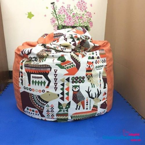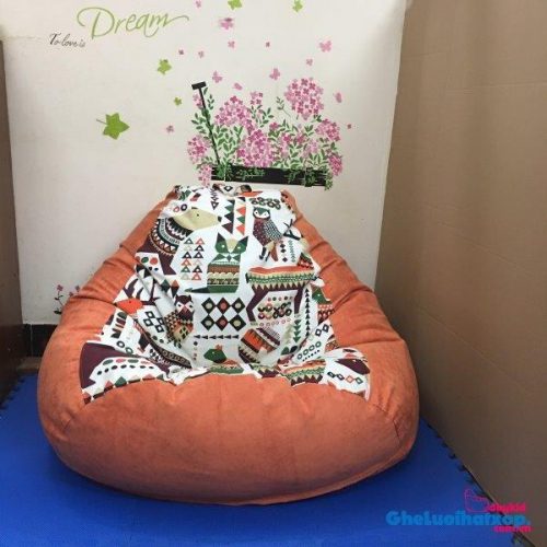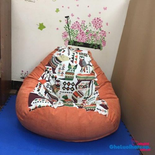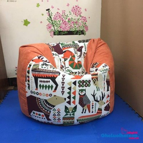 Ghế lười hạt xốp cao cấp chất thô canvas họa tiết thú + da lộn cam đất trầm tạo cảm giác mới lạ, độc đáo hơn. Phần chất thô canvas thoáng mát, chất cotton cứng sợi dệt rất thích hợp sử dụng vào mùa hè.