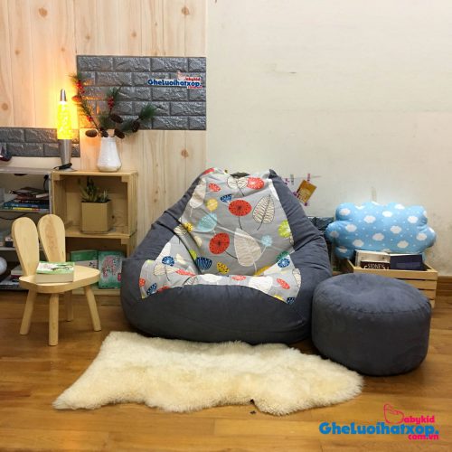 - Ghế lười xốp họa tiết kẻ sọc xanh được làm từ chất liệu thô họa tiết kết hợp với viền da lộn mang đến điểm nhấn độc đáo cho không gian của bạn.