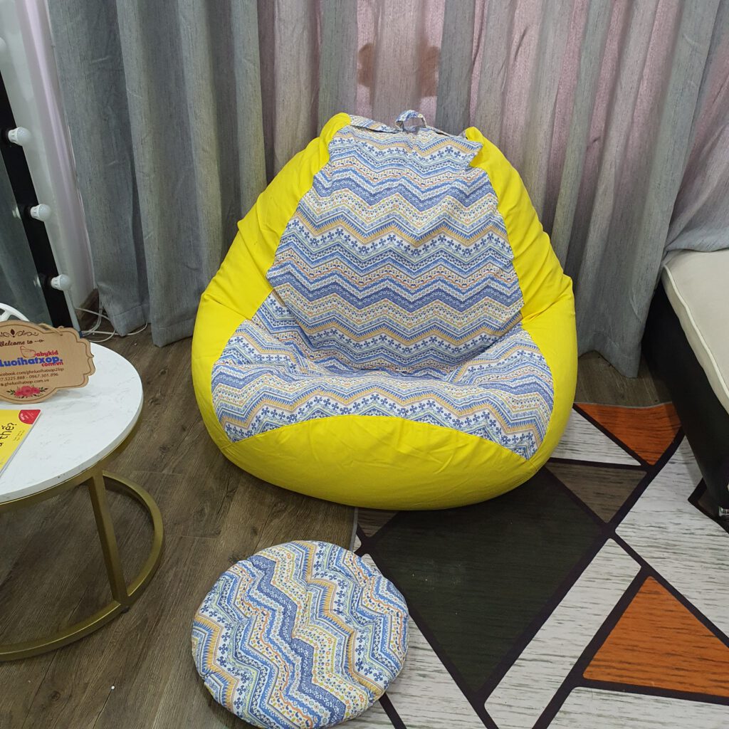 Ghế lười hạt xốp dáng lê hoạ tiết thổ cẩm đặc biệt phù hợp với với thiết kế và decor vintage. Đây là xu hướng nội thất ngày cáng được các gia đình thậm chí là các quán trà, cafe, quán ăn lựa chọn.