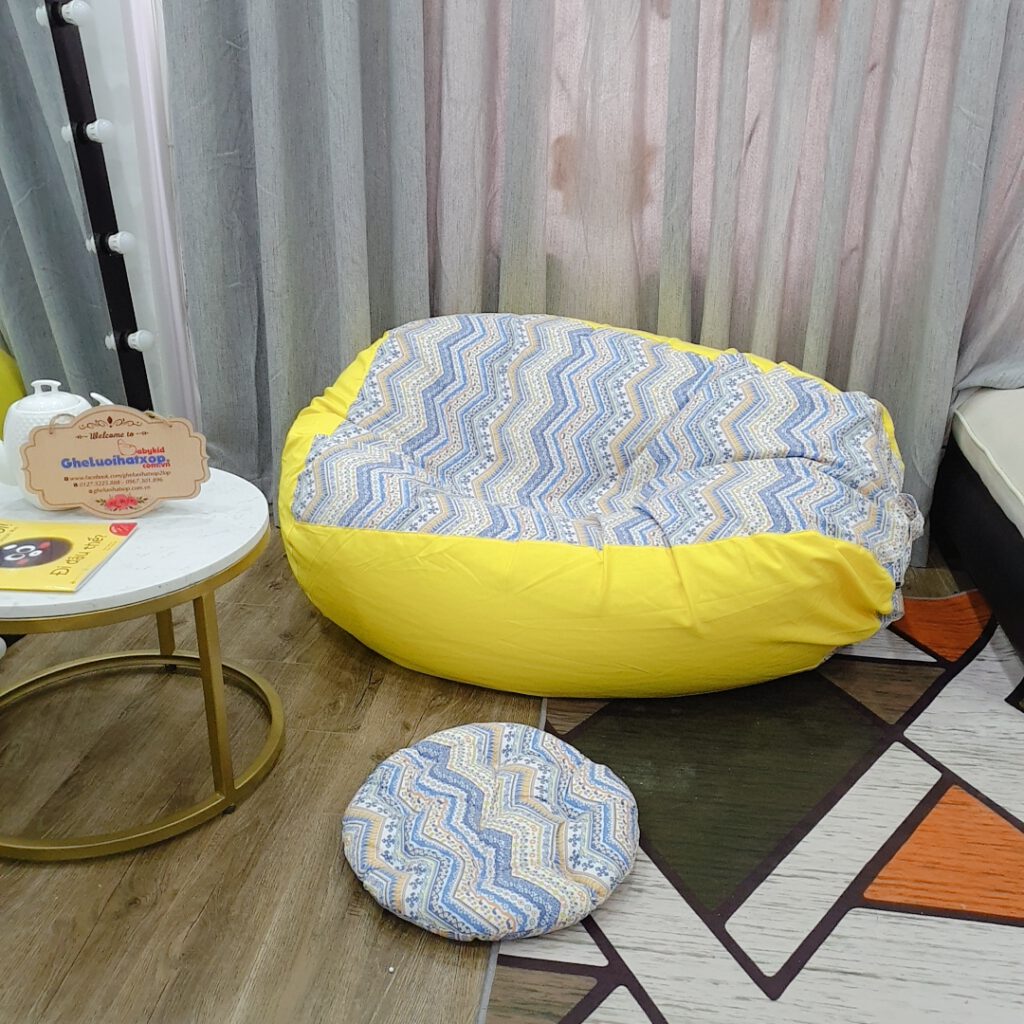 Thông tin sản phẩm: Ghế lười hạt xốp vải thô nhật họa tiết thổ cẩm mix GL L100