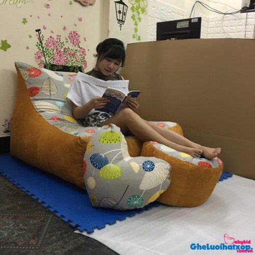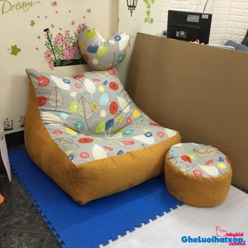 Ghế lười sofa giường với kích thước rộng rãi hơn các loại ghế lười xốp thông thường; nên khi sử dụng mẫu ghế lười xốp này người dùng có thể thư giãn thoải mái nhất. Ghế lười dáng sofa giường SF023 sử dụng vải thô canvas họa tiết lá hoa phối cùng màu vàng da lộn.