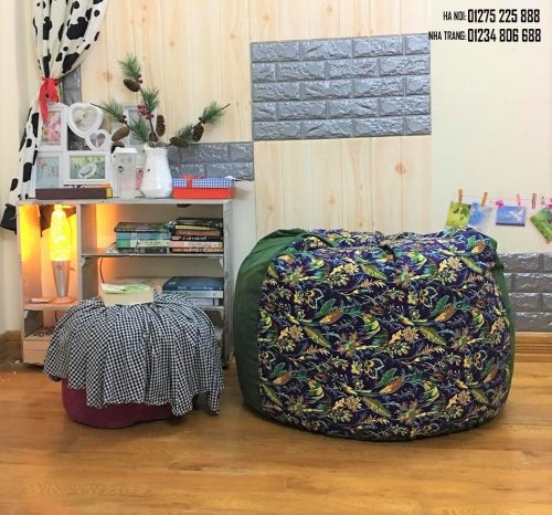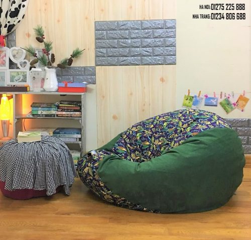 - Tên sản phẩm: Ghế lười dáng lê họa tiết cỏ dại + xanh lá