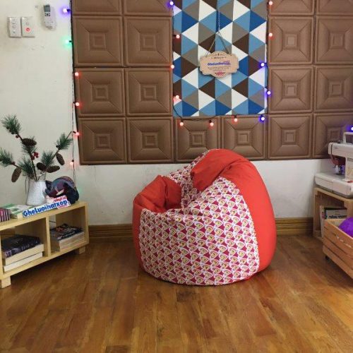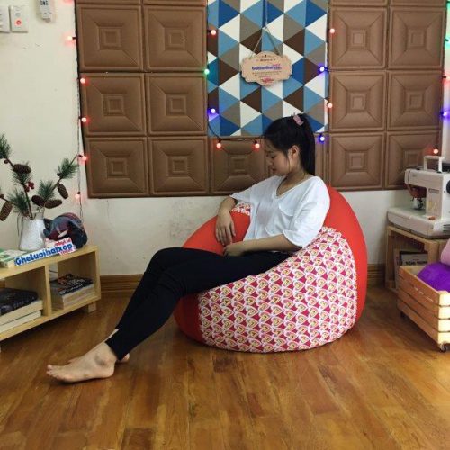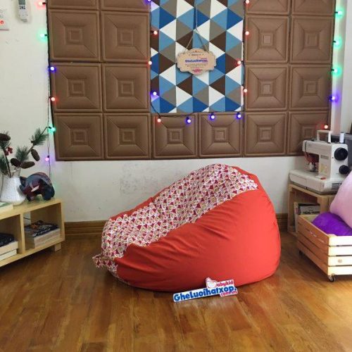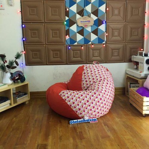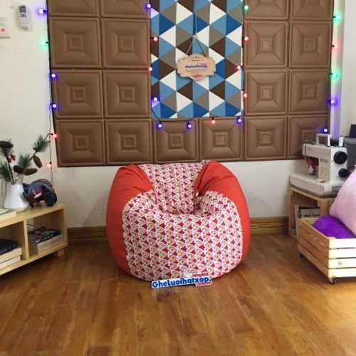Ghế xốp dáng lê họa tiết tim mix cam đỏ GL L256