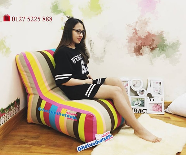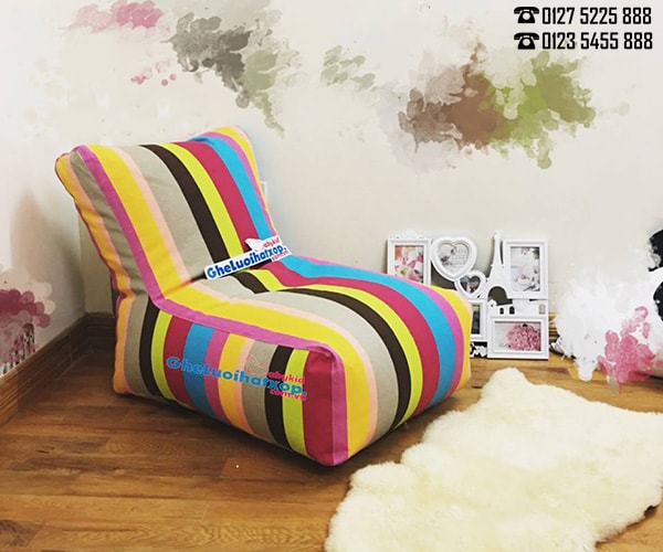 - Ghế lười xốp dáng sofa nổi bật với gam màu của 7 sắc cầu vồng, vô cùng nổi bật và bắt mắt, mang đến sự trẻ trung và sống động cho không gian của bạn.
