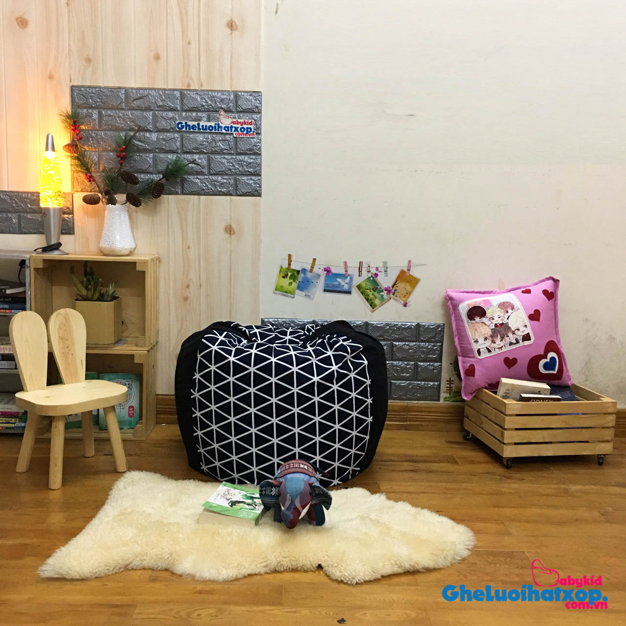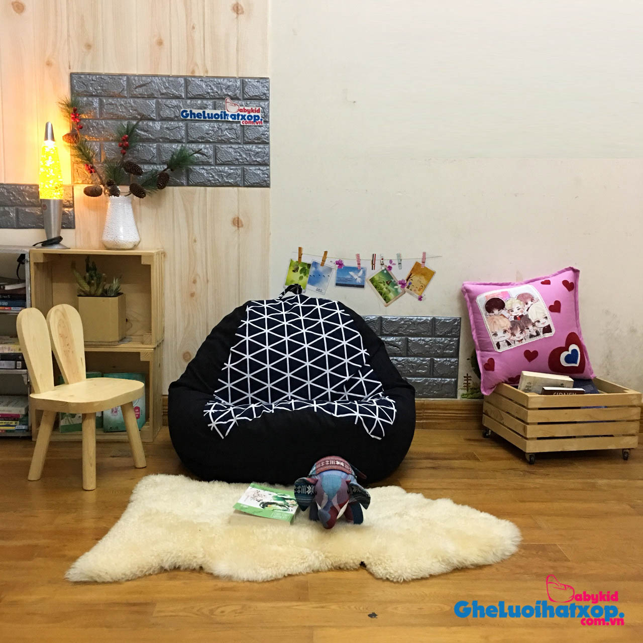 - Ghế hạt xốp GL L197 với họa tiết kẻ tam giác vô cùng trẻ trung, độc đáo kết hợp với tông màu đen huyền bí mang đến sự lịch lãm, thời thượng và đẳng cấp.