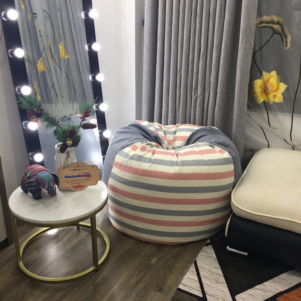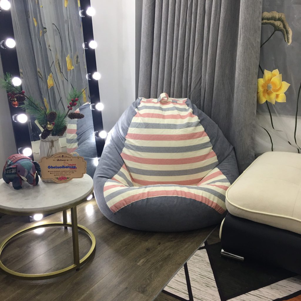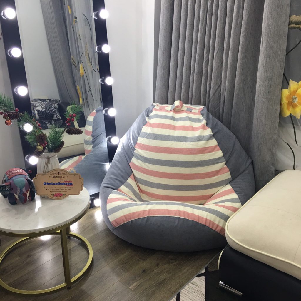 Thông tin sản phẩm: Ghế lười hat xốp thô nilen kẻ sọc hồng mix da lộn GL L063